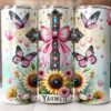 Let your faith shine with this graceful blend of devotion and delicate beauty. The design centers around an elegant cross adorned with a soft pink bow, symbolizing the perfect harmony of strength and feminine grace. Radiant sunflowers and gentle butterflies dance around the sacred “Yahweh” lettering, creating a garden of spiritual significance.